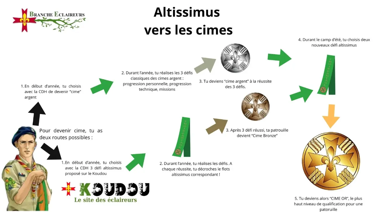 Si tu réalises avec ta patrouille 3 défis dans l'année, avec l'accord de la CdH, tu peux demander à être reconnu comme patrouille cime.